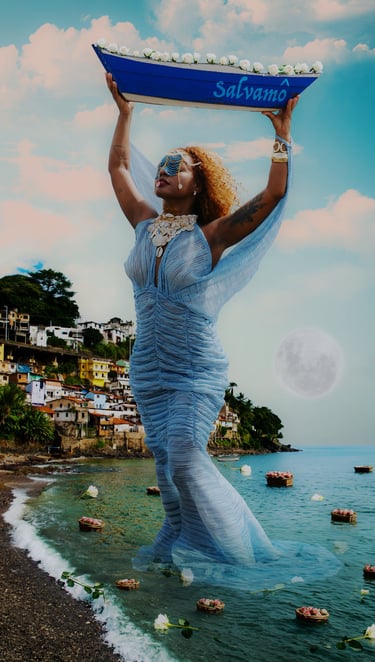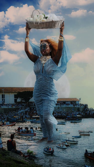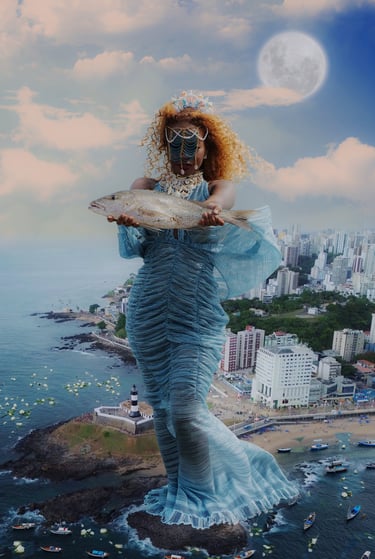 Este projeto é uma jornada visual que navega entre a devoção e a manipulação da imagem, onde o sagrado afro-brasileiro se manifesta em múltiplas dimensões. ODOYÁ não é apenas um registro fotográfico, mas uma construção de altares visuais que celebram a Rainha do Mar em sua complexidade e onipresença.